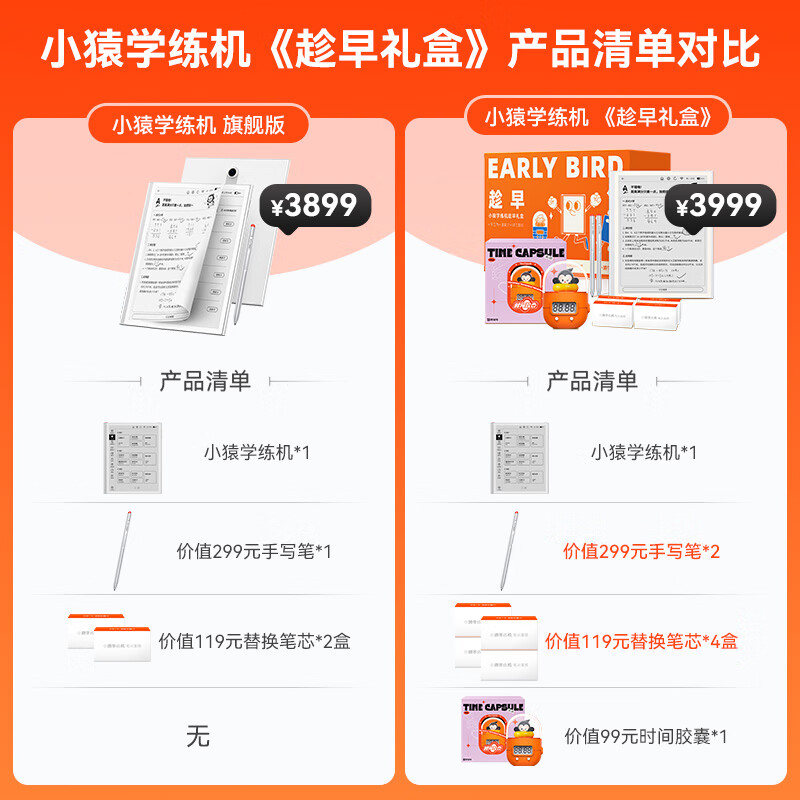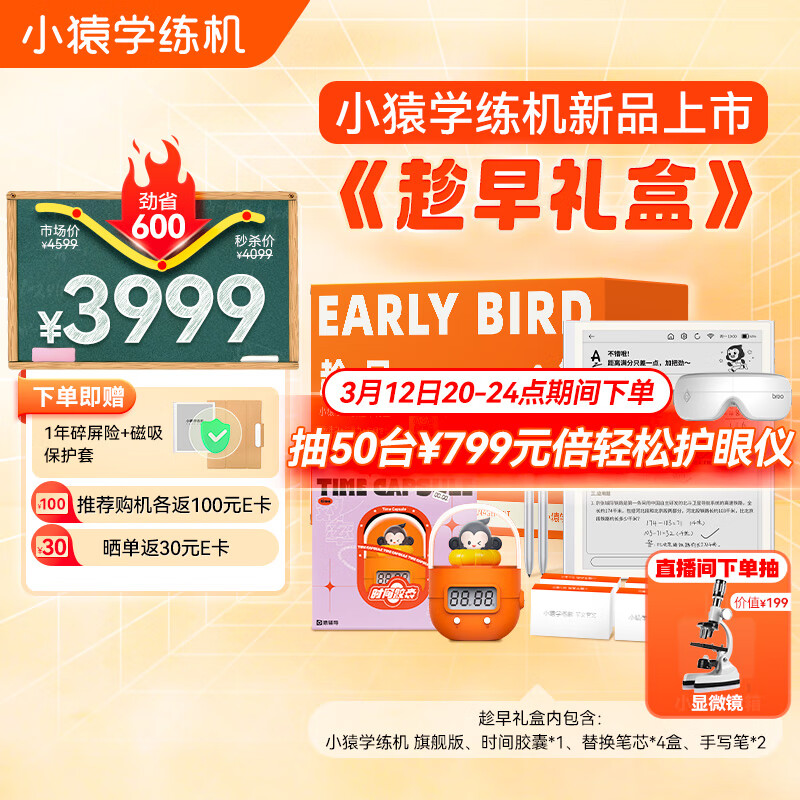 小猿学练机 旗舰款 教材同步练 AI错题本 墨水屏学习平板 猿辅导学习机 小猿智能练习本S2价格:3999.00元!
