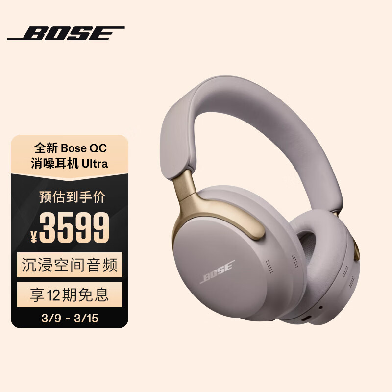 Bose QuietComfort 消噪耳机Ultra-沙丘灰 头戴式无线蓝牙降噪 沉浸音乐体验 全新旗舰款 刘宪华代言价格:3599.00元!
