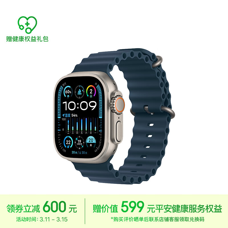 Apple/苹果 Watch Ultra2 智能手表 GPS+蜂窝款 49毫米 钛金属表壳蓝色海洋表带 健康手表 MRF73CH/A价格:6499.00元!