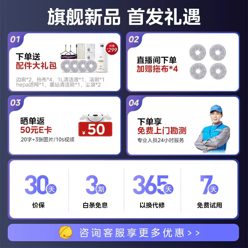 美的(Midea)扫地机器人扫拖一体 灵眸V12极地白 自动集尘扫拖洗烘一体机自动清洗拖布洗地机拖地机价格:2699.00元!