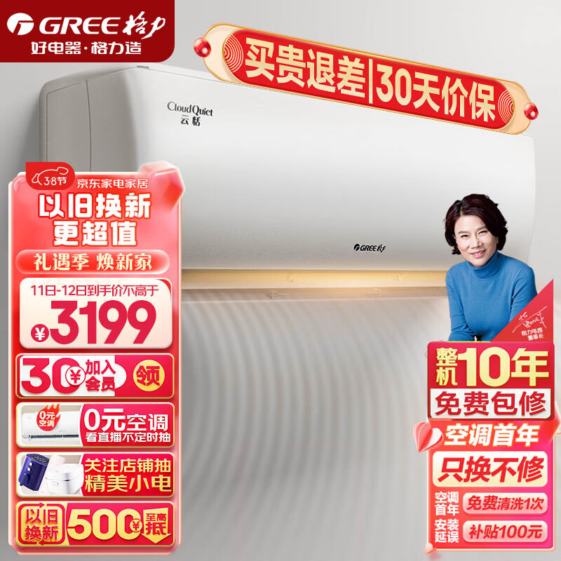 格力(GREE)1.5匹云恬一级能效 变频冷暖 壁挂式卧室空调挂机KFR-35GW/NhAf1BG(珊瑚玉色)价格:3199.00元!
