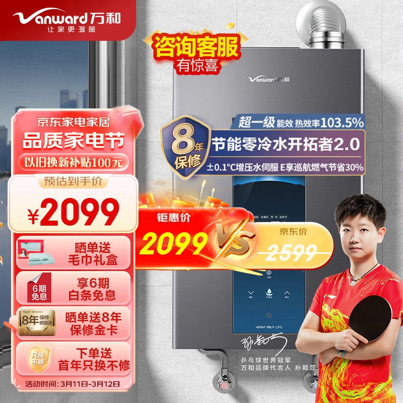 万和(Vanward)燃气热水器16升零冷水水伺服恒温一级能效冷凝式小体积降噪天然气增压MLS5D16以旧换新价格:2599.00元!