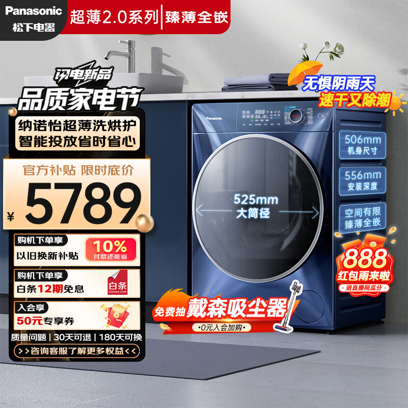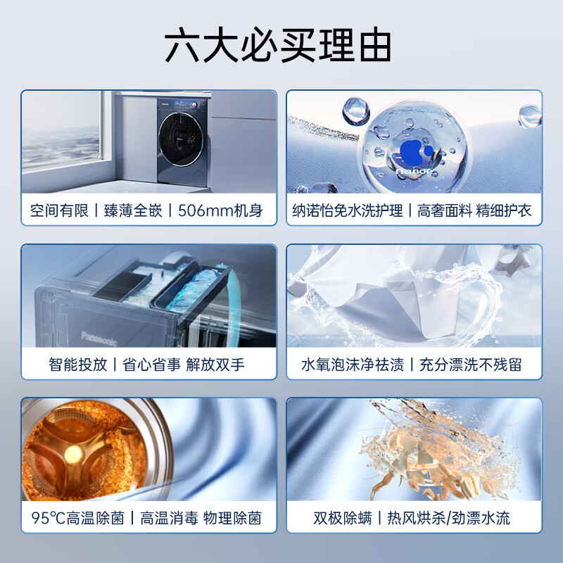 松下(Panasonic)滚筒洗衣机全自动 506超薄2.0【臻薄全嵌豪华版】10公斤洗烘一体 户外服 智投 纳诺怡XQG100-830AF价格:5789.00元!