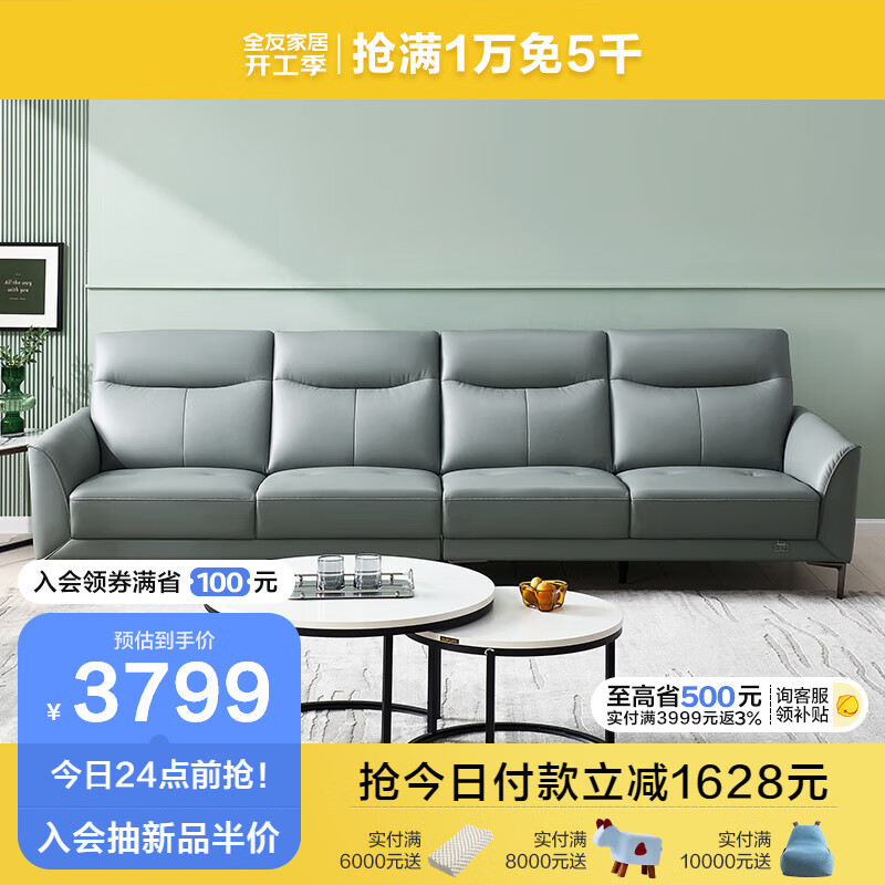 全友家居 真皮沙发 现代简约头层牛皮轻奢风直排式皮艺沙发客厅102710价格:5427.14元!