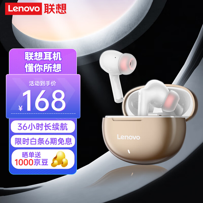 联想(lenovo)蓝牙耳机真无线 降噪耳机入耳式 蓝牙5.3游戏运动音乐耳机适用于苹果华为小米手机TC3306耀石金价格:168.00元!