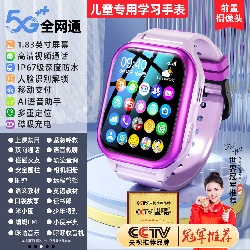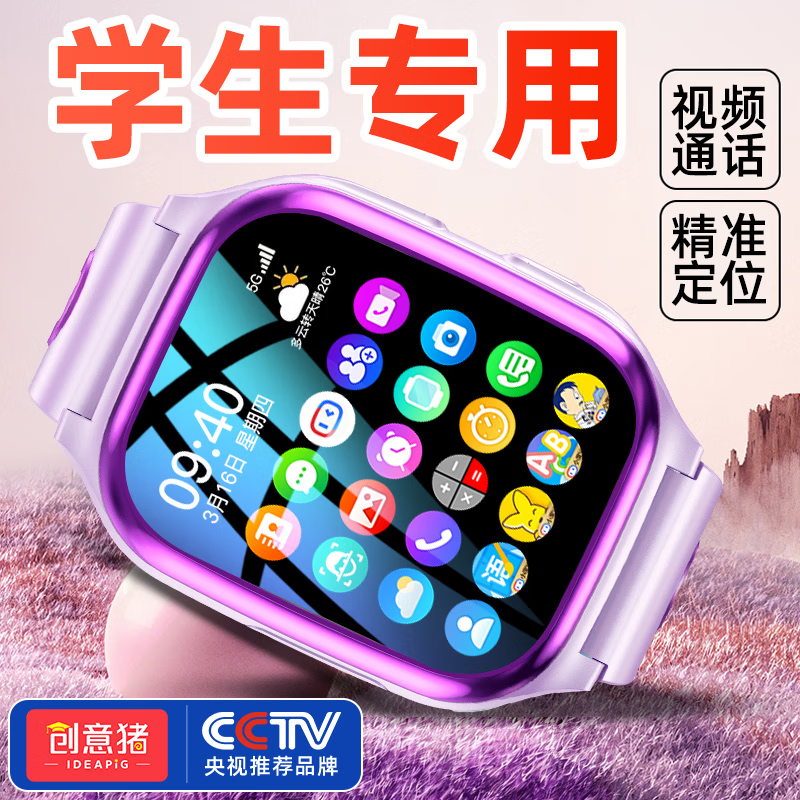 创意猪儿童电话手表定位视频通话6-12岁智能玩具男孩女孩生日礼物小学生 豪华版粉【高清大屏+移动支付】 通AI智能儿童电话手表价格:159.00元!