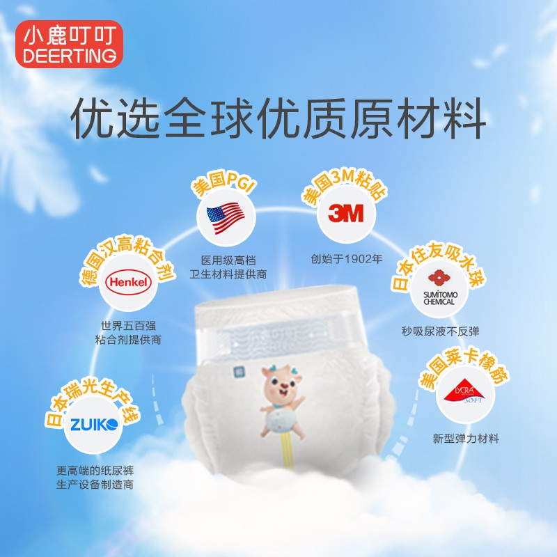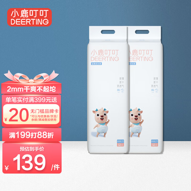 小鹿叮叮超薄成长裤XXXXL码64片(18kg以上)尿不湿拉拉裤宝宝透气学步裤价格:157.00元!