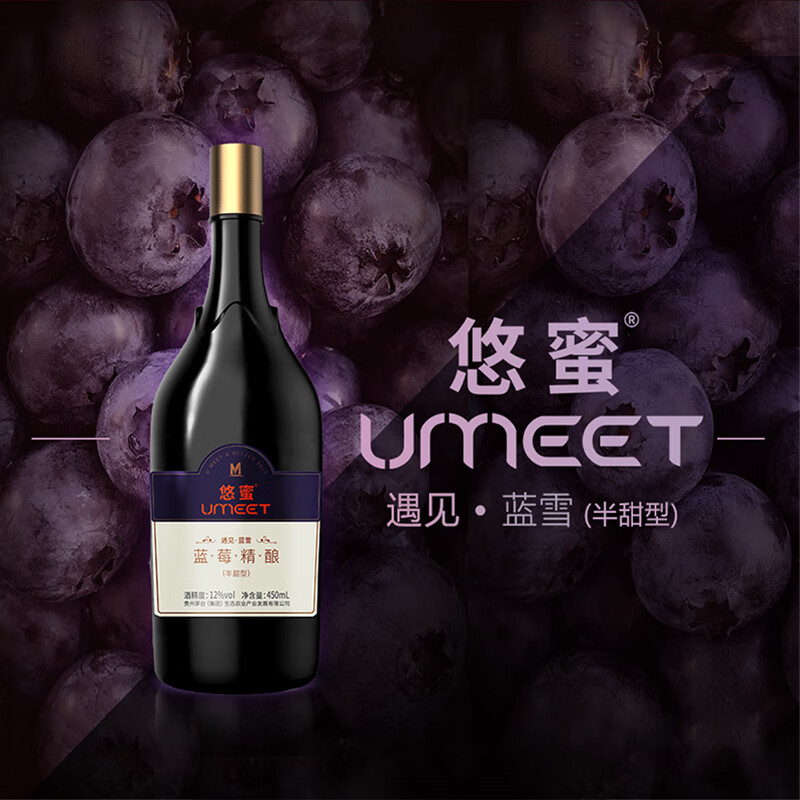 茅台(MOUTAI)生态农业悠蜜蓝莓酒 遇见·蓝雪果味酒 (半甜型)450ml单瓶装价格:99.00元!