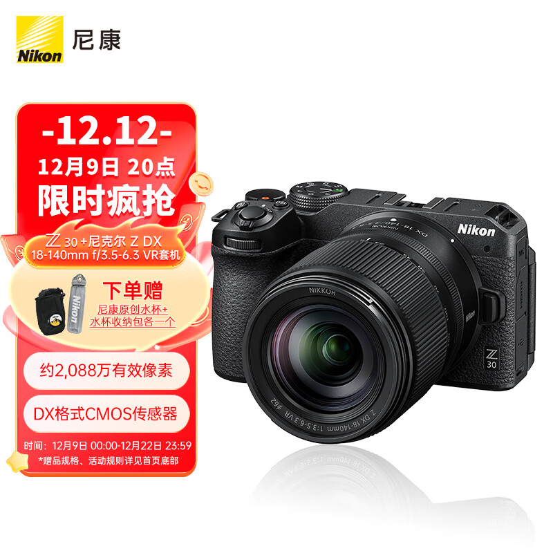 尼康(Nikon)Z30 Vlog视频 微单相机 无反相机 半画幅(Z DX 18-140mm f/3.5-6.3 VR)vlog视频相机价格:8699.00元!