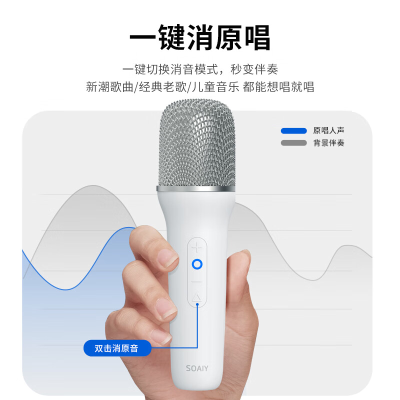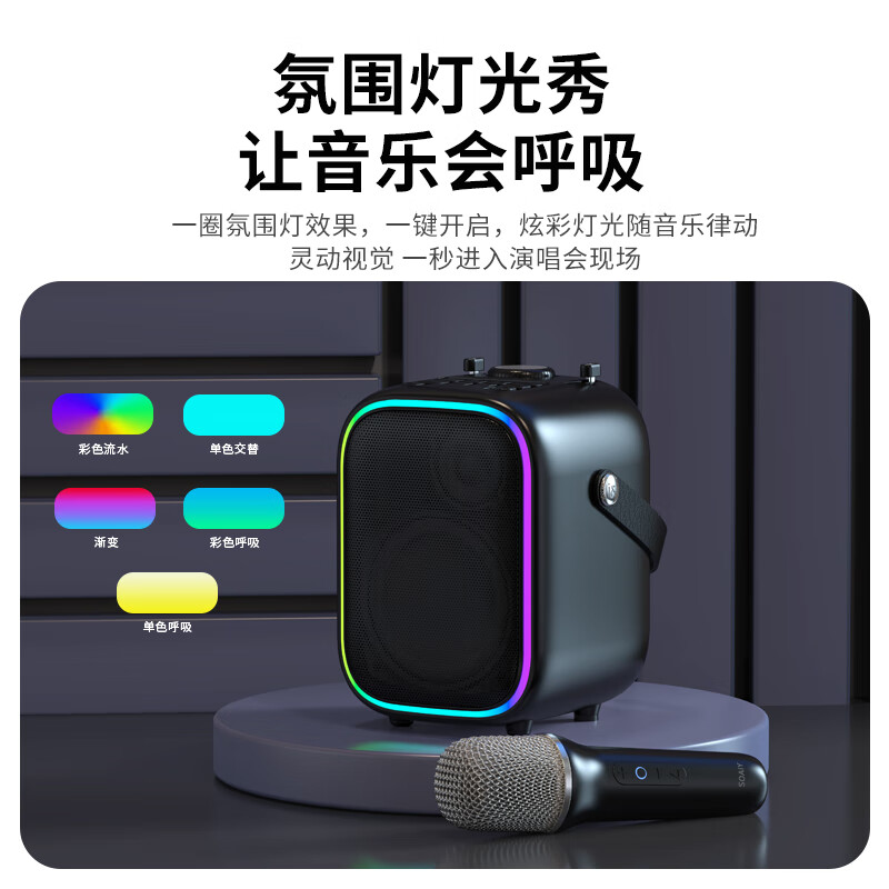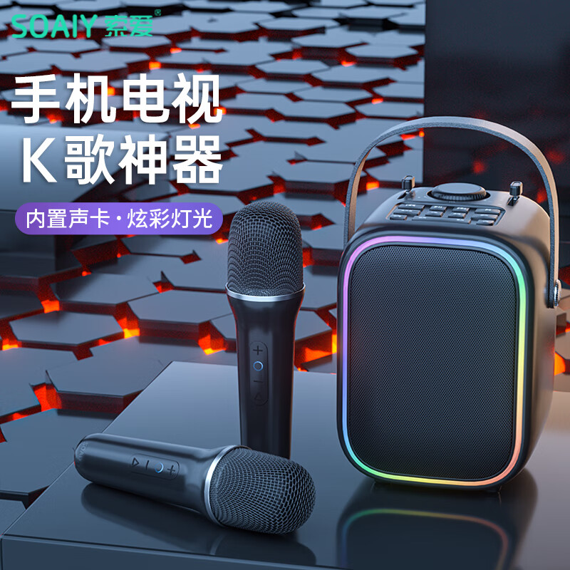 索爱(soaiy)SK6话筒音响一体麦克风家用K歌唱歌直播专用儿童无线蓝牙家庭KTV声卡版暗月黑【双话筒】价格:329.00元!