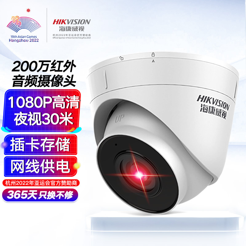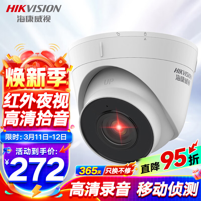 HIKVISION海康威视监控摄像头200万高清红外夜视可拾音商超学校室内半球T12H-IFA 2.8MM价格:287.00元!