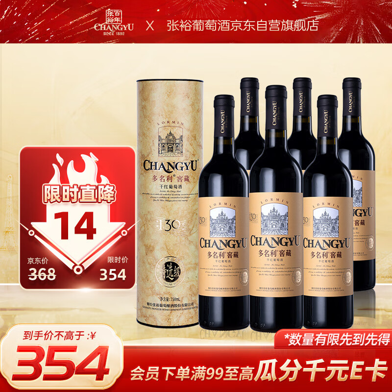 张裕 特选级窖藏赤霞珠干红葡萄酒750ml*6瓶整箱圆筒装国产红酒送礼价格:319.00元!