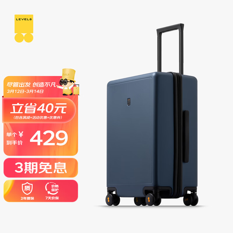 地平线8号(LEVEL8)行李箱男拉杆箱女托运箱24英寸PC箱大容量 万向轮旅行箱 蓝色价格:469.00元!