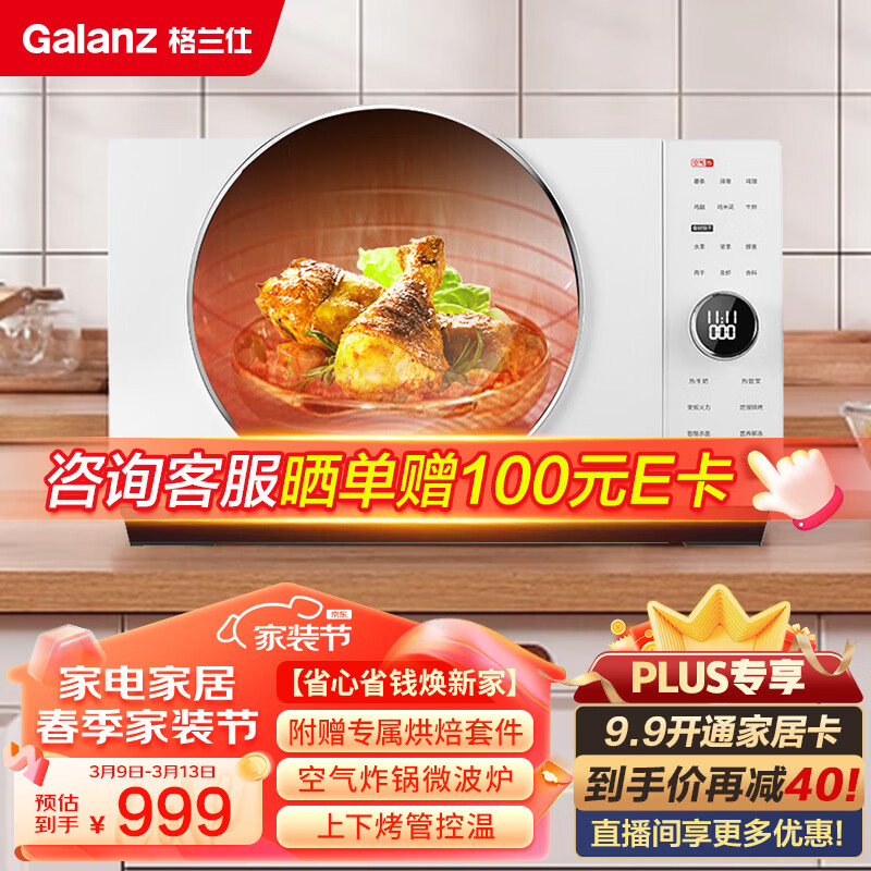 格兰仕(Galanz) 厨房系列 900W加热 不锈钢内胆变频 空气炸微波炉烤箱一体机D90F25MSXLDV-DR(W0)价格:999.00元!