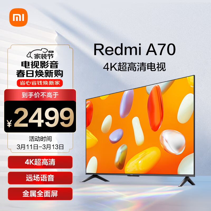 小米电视 Redmi 智能电视 A70 70英寸 2024款 4K超高清远场语音 金属屏 液晶护眼平板电视L70RA-RA价格:2499.00元!