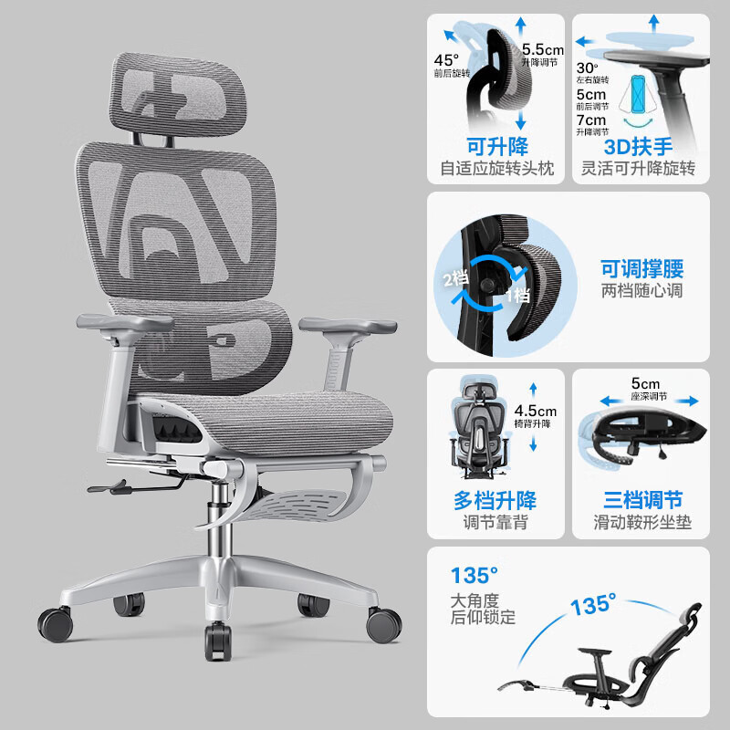 永艺ACT100撑腰椅 人体工学电脑椅 透气椅带脚踏 可躺椅子办公椅价格:1399.00元!