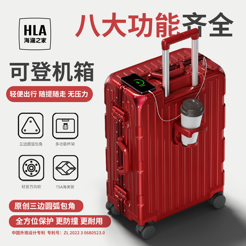 海澜之家(HLA)行李箱男女学生铝框拉杆箱旅行登机密码托运皮箱 法拉红20英寸价格:389.00元!
