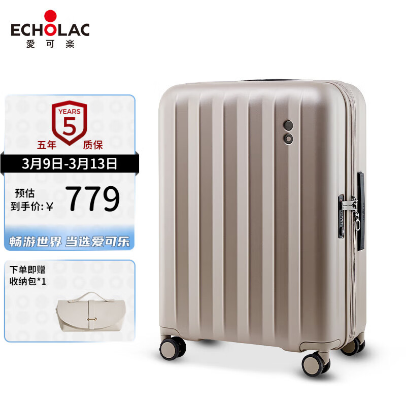 爱可乐(Echolac)万向轮行李箱大容量旅行箱防刮密码扩容箱托运箱PC232拿铁棕28吋价格:959.00元!