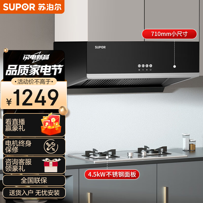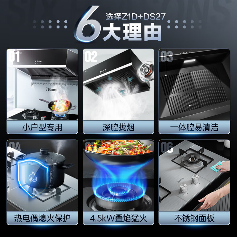 苏泊尔(SUPOR) 抽油烟机 中式油烟机套装 15立方家用小户型吸油烟机灶具套装 Z1D+DS27液化气价格:1249.00元!