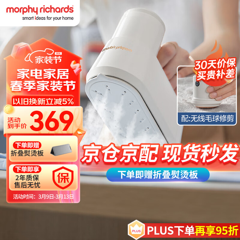 摩飞电器(Morphyrichards)手持挂烫机家用电熨斗蒸汽熨烫机便携式旅游出差可去毛球熨衣机【高效除菌除螨】MR2032白价格:369.00元!