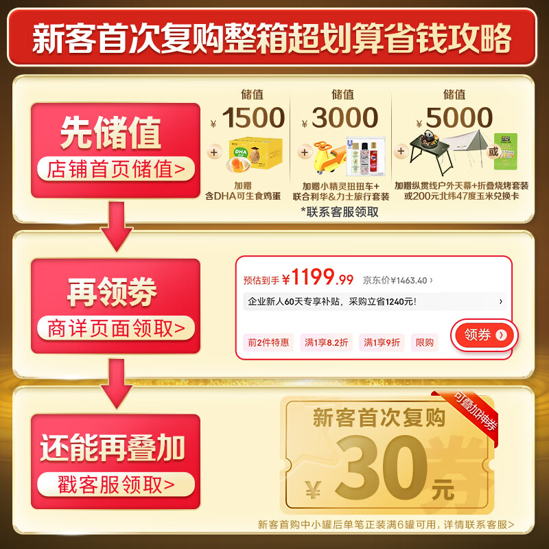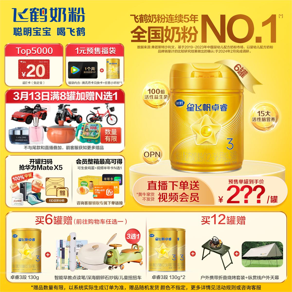 飞鹤【5年奶粉No.1】星飞帆卓睿 幼儿配方奶粉 3段(12-36月龄)750g*6价格:1948.10元!