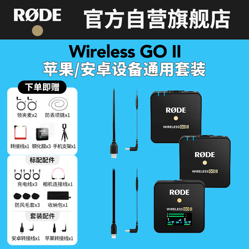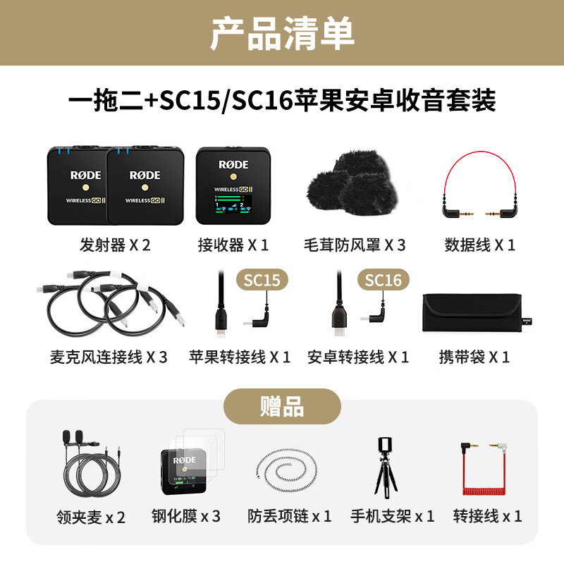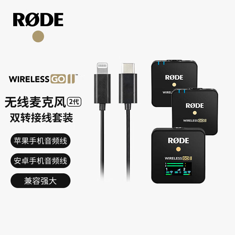 RODE罗德Wireless GO II 无线领夹麦克风一拖二直播录音采访VLOG相机手机专业收音话筒+SC15/SC16套装价格:2855.00元!