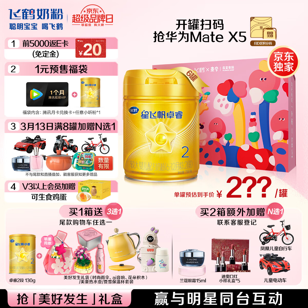 飞鹤星飞帆卓睿2段婴儿配方奶粉(6-12月龄) 750g*6【美好发生礼盒】价格:1950.00元!