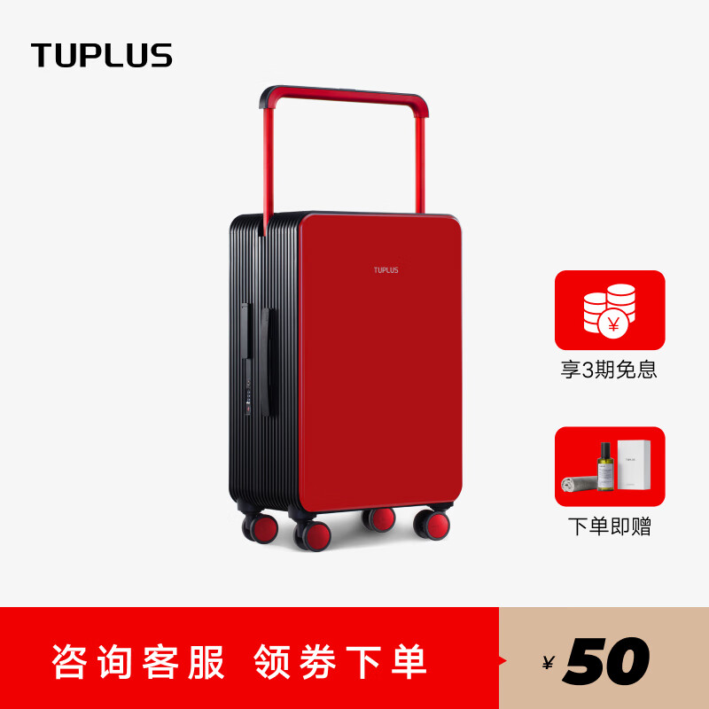 途加TUPLUS 托运拉杆箱男女大容量旅行箱24英寸双排轮行李箱 红黑撞色价格:1599.00元!