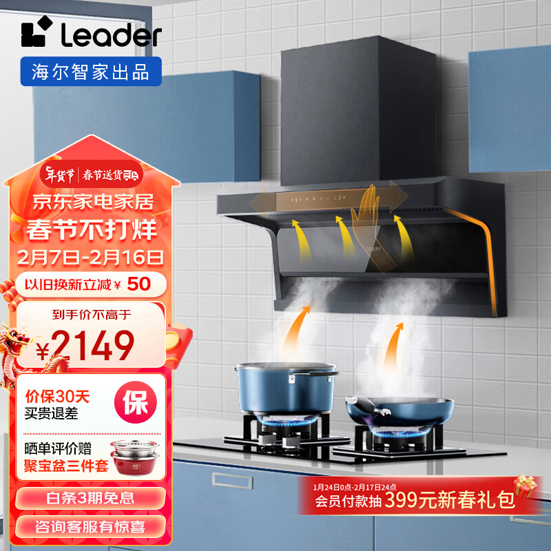 海尔(Haier)抽油烟机燃气灶套装 顶侧双吸油烟机家用 24风量大吸力 5.2kw灶具 海尔智家出品抽烟机IQ92D天然气价格:2149.00元!