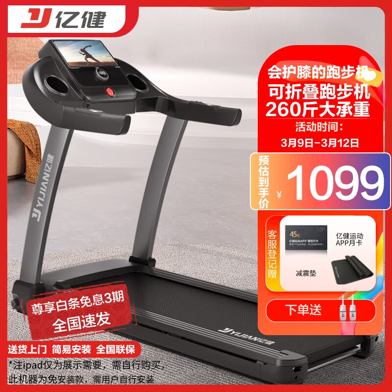 亿健(YIJIAN)跑步机家庭用降噪可折叠健身器材室内简易安装ELX走步机价格:1099.00元!