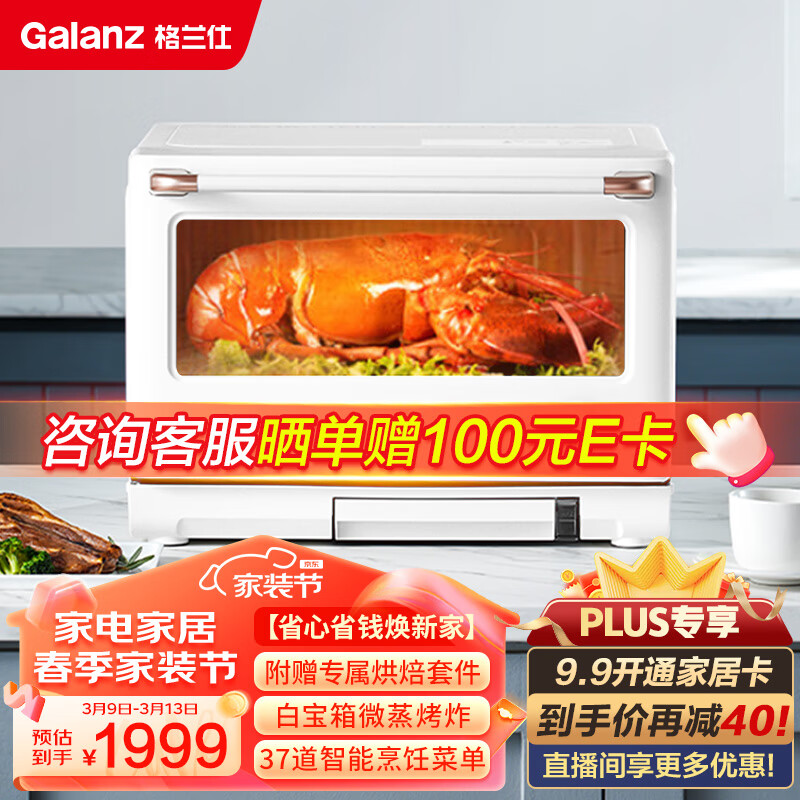 格兰仕(Galanz)白宝箱系列微蒸烤炸四合一家用20L小型微波炉烤箱蒸烤箱一体机D90Q20ESXLV-RW(W0)价格:1999.00元!