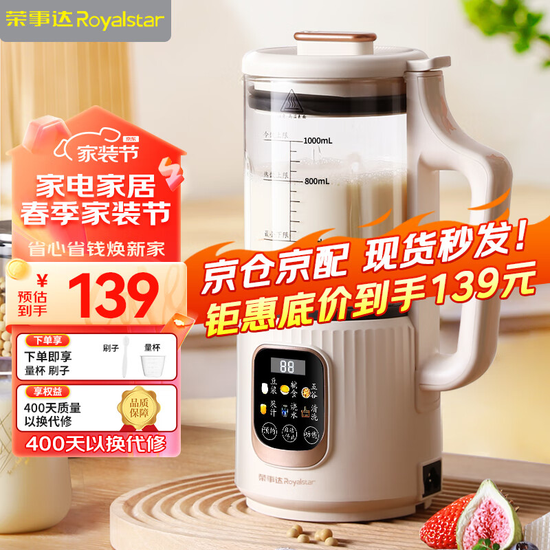 荣事达(Royalstar)破壁机 家用迷你豆浆机全自动免煮五谷杂粮多功能加热免滤打豆浆辅食机小型料理机榨汁机RD-551A价格:169.00元!