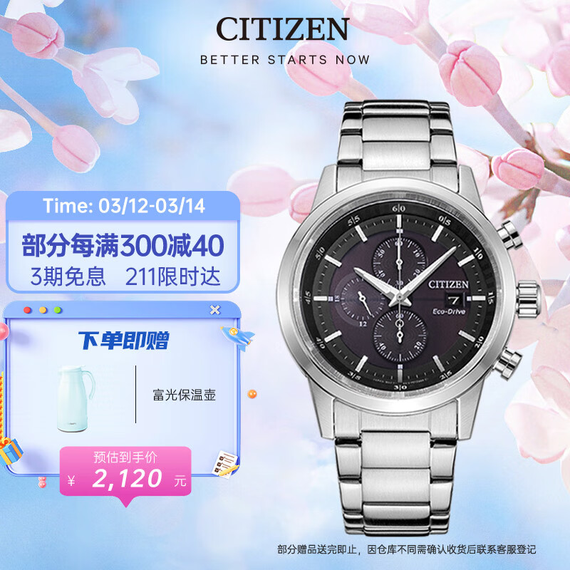 西铁城(CITIZEN)手表男日韩表光动能三眼黑盘日显钢带商务送礼物男友CA0610-52E价格:2340.00元!