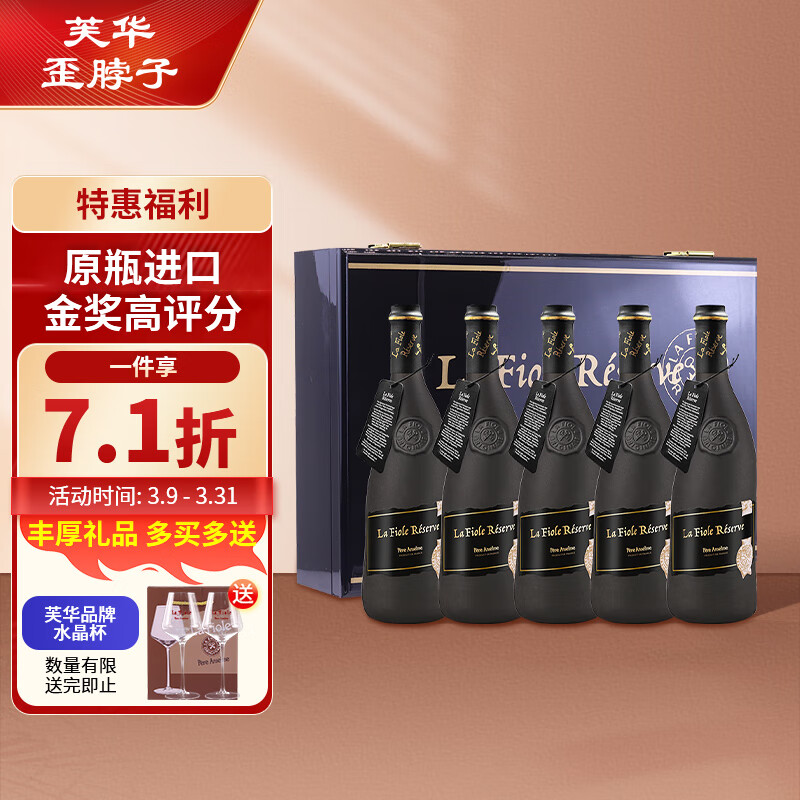 芙华(La Fiole)歪脖子红酒 法国原瓶进口 珍藏黑瓶干红葡萄酒 750ml*5支 礼盒装价格:1688.00元!