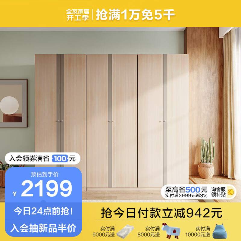 全友家居 衣柜北欧简约平开门衣柜多规格半定制灵活组合衣橱106305价格:3141.43元!