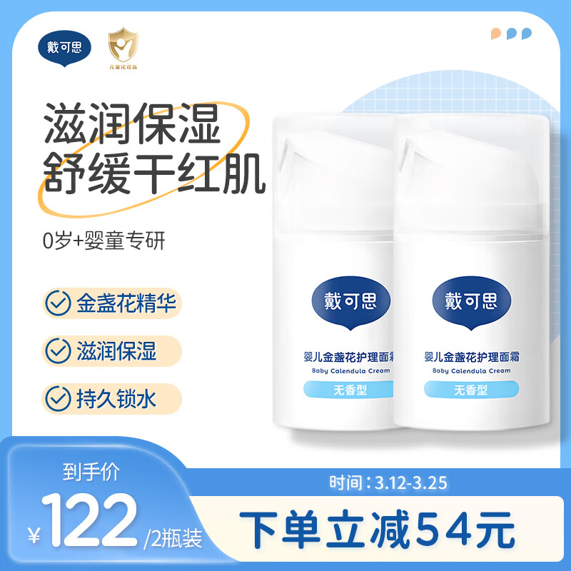 戴·可·思婴儿金盏花护理面霜 儿童保湿补水润肤乳 新生儿宝宝面霜50g*2价格:176.00元!