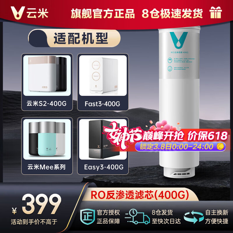 云米(VIOMI) 升级款云米净水器滤芯适配机型S2、Fast3、X2、Quick5、MeePlus、澎湃/Fast 1000G 2号RO膜(400G)价格:398.00元!