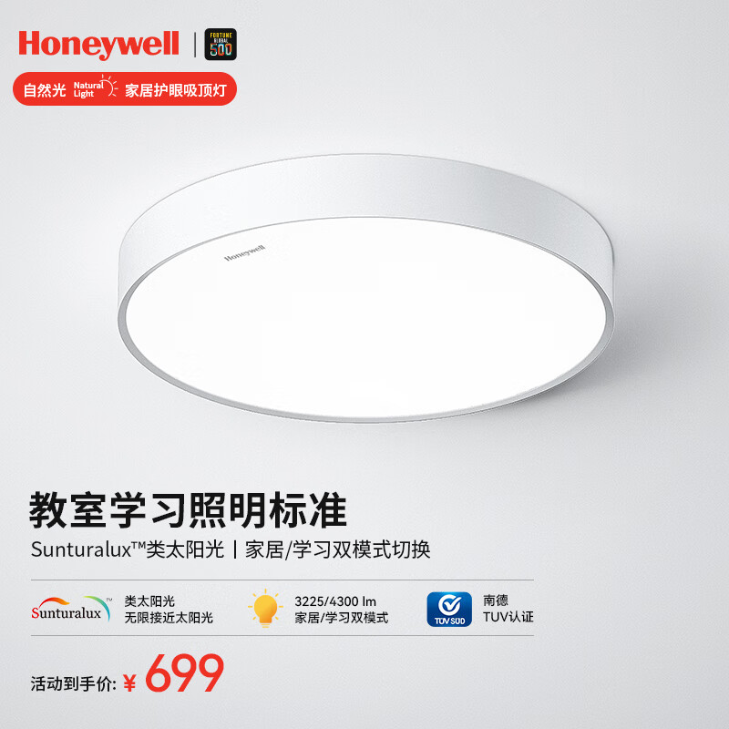 霍尼韦尔(Honeywell)卧室客厅儿童房护眼吸顶灯全光谱LED防蓝光防频闪 自然光系列 HWX-03B01 50W(适用面积8-14㎡)价格:873.75元!