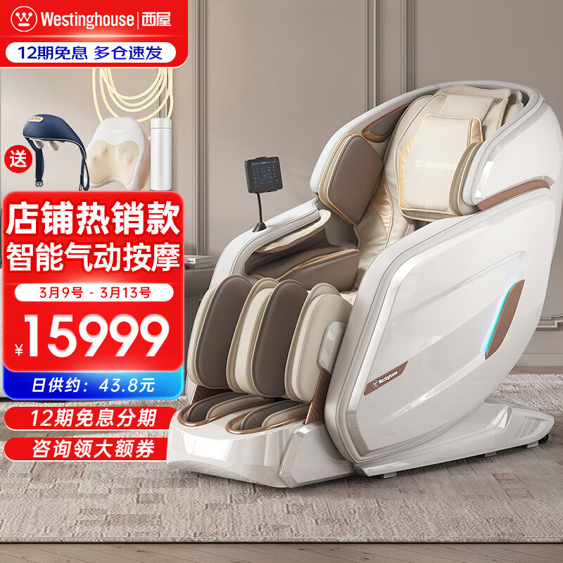 西屋(Westinghouse)S610全自动3D按摩椅家用零重力太空舱电动按摩沙发按摩躺椅送长辈礼物 冰川白 3月10日陆续发货价格:15999.00元!