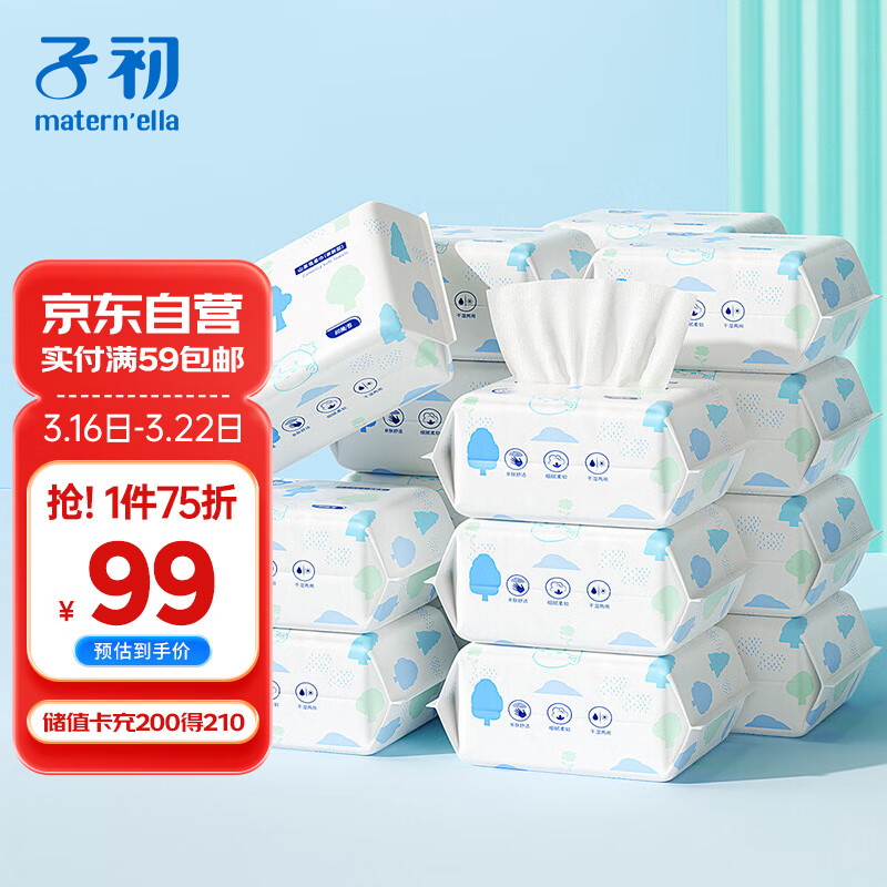 子初子初 婴儿干湿两用绵柔巾(京东)12*20cm,100抽/包*6包/提x3提价格参考: