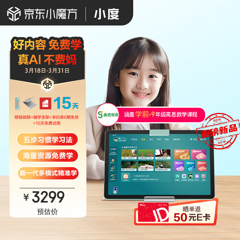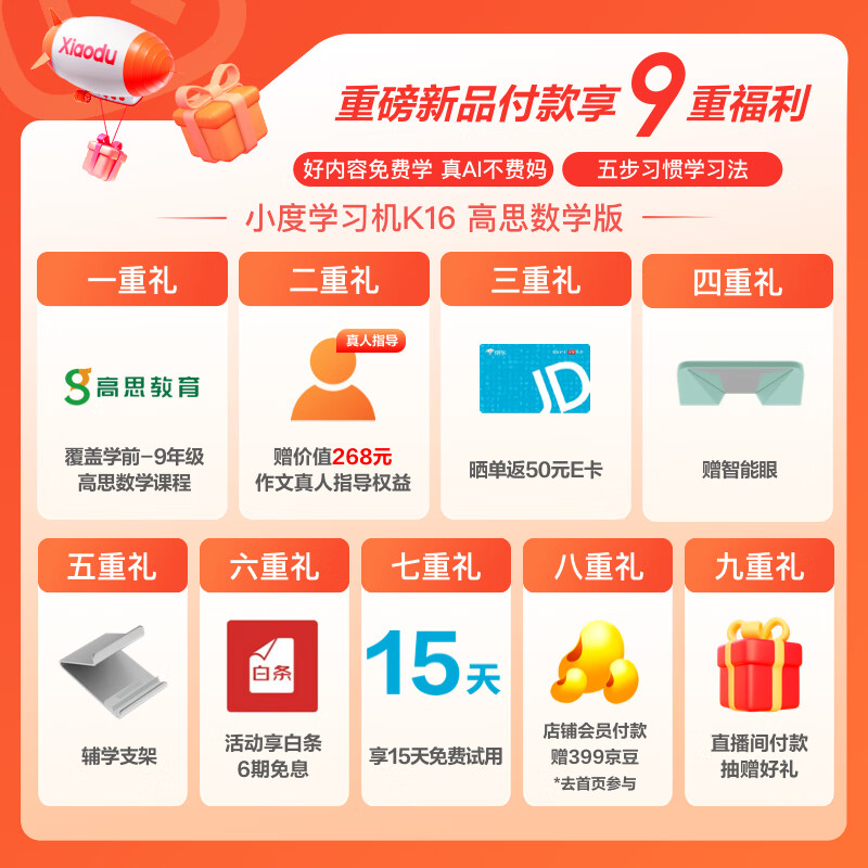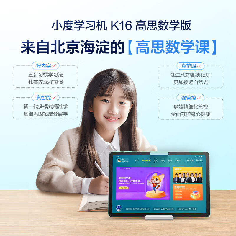 小度学习机K16高思数学版 (6+256GB)小学初中高中学生平板 全科全龄全免费 5步习惯学习法 护眼价格:3299.00元!