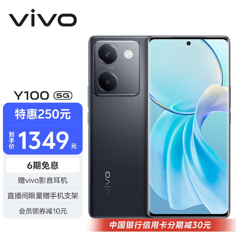 vivo Y100 8GB+256GB 星夜黑 超薄5000mAh电池 6400万OIS光学防抖 44W超快闪充 5G 快充 拍照 手机价格:1599.00元!