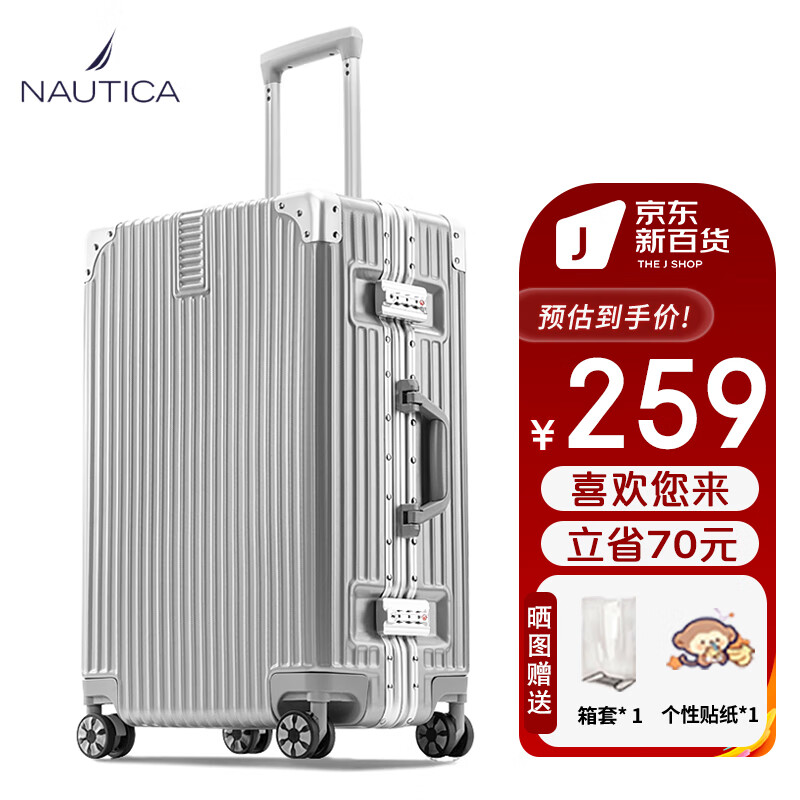 NAUTICA铝框行李箱男生万向轮耐用商务26英寸大容量女旅行箱学生密码皮箱价格:329.00元!