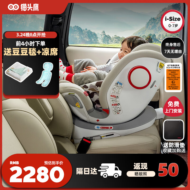 猫头鹰(SAVILE)儿童座椅0-4-7岁360度旋转ISOFIX硬接口M178A妙转PRO银白价格:2280.00元!