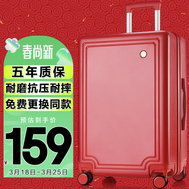 B.L.B.L结婚箱行李箱陪嫁箱大红色箱子拉杆箱女皮箱密码新娘嫁妆箱20英寸价格:159.00元!