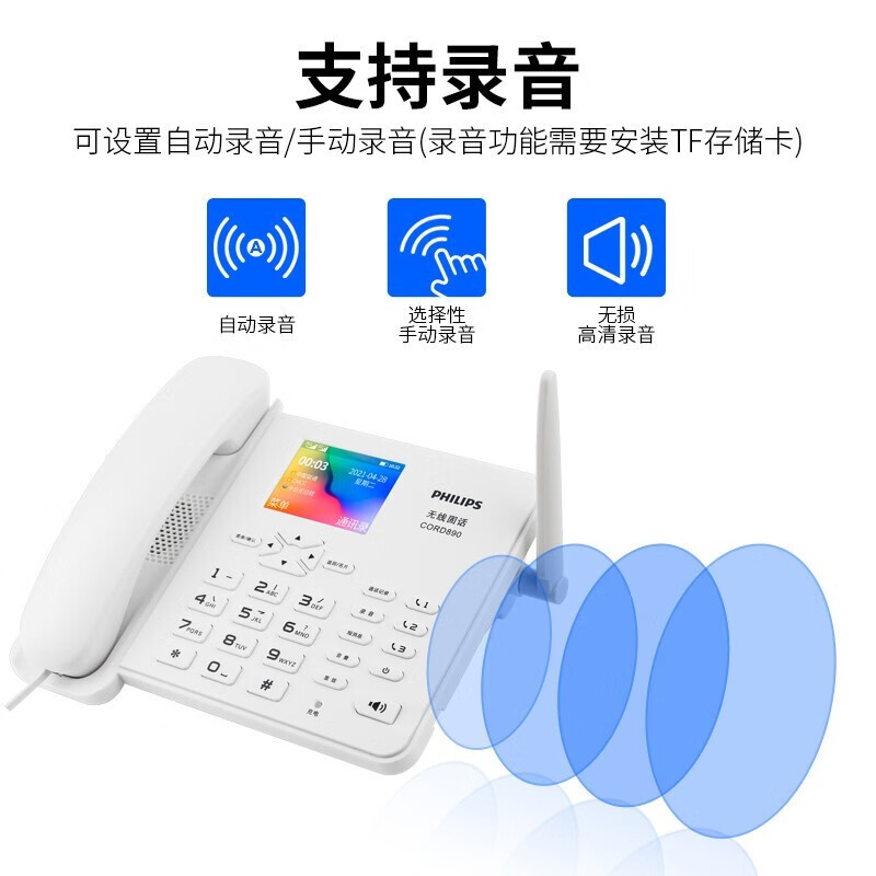 飞利浦(PHILIPS)插卡电话机 移动/联通固定插卡 录音座机 中文菜单 CORD890 白色普通版价格:159.00元!