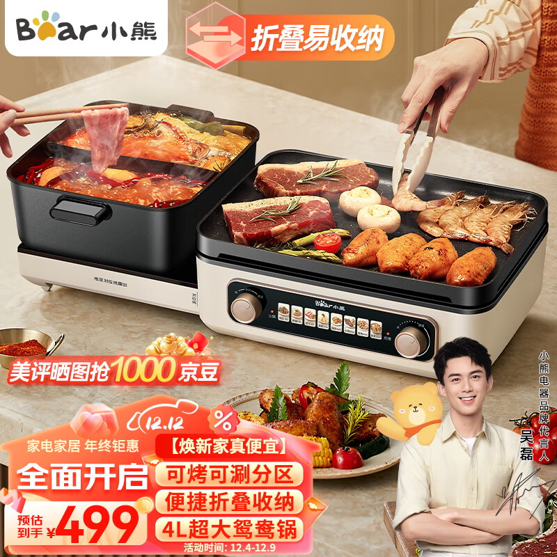小熊(Bear)折叠多功能料理锅 电火锅 鸳鸯锅 火锅专用锅烤涮一体锅家用轻烟烤肉锅火锅烧烤DKL-E22W1价格:499.00元!