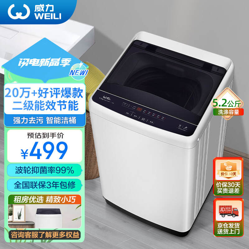 威力(WEILI)5.2公斤 波轮洗衣机全自动 洗衣机小型 租房宿舍神器 以旧换新(雅白色)XQB52-5226B-1价格:499.00元!