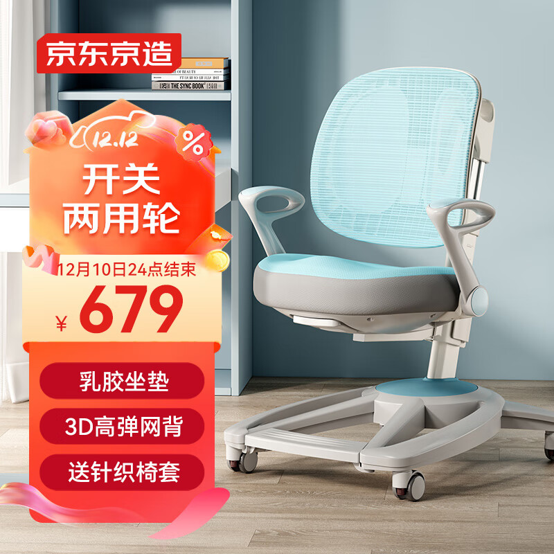 京东京造儿童学习椅 学生椅 儿童椅子 儿童座椅 儿童写字椅 追背网椅蓝价格:849.00元!
