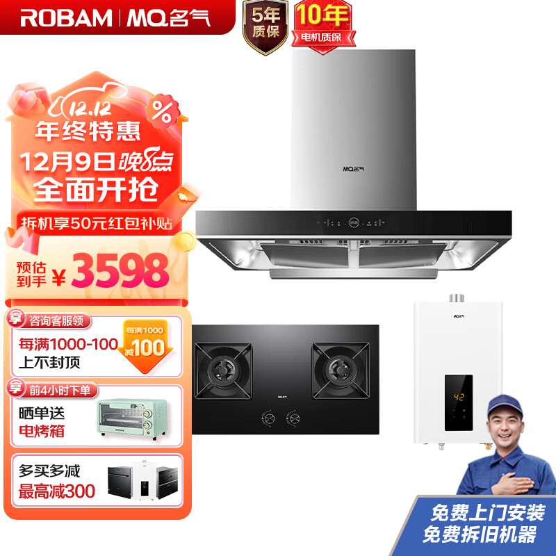 名气(MQ)老板抽油烟机燃气灶套装23大吸力顶吸抽烟机燃气热水器烟灶热三件套天然气6519A+A6510B++R5A06-14价格:3598.00元!